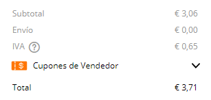 Si lo añadimos al carrito y procedemos a finalizar la compra, podemos ver que aparece un nuevo apartado en la sección del resumen de la compra, el IVA añadido, el cual deja finalmente el producto a un precio de 3,71€.